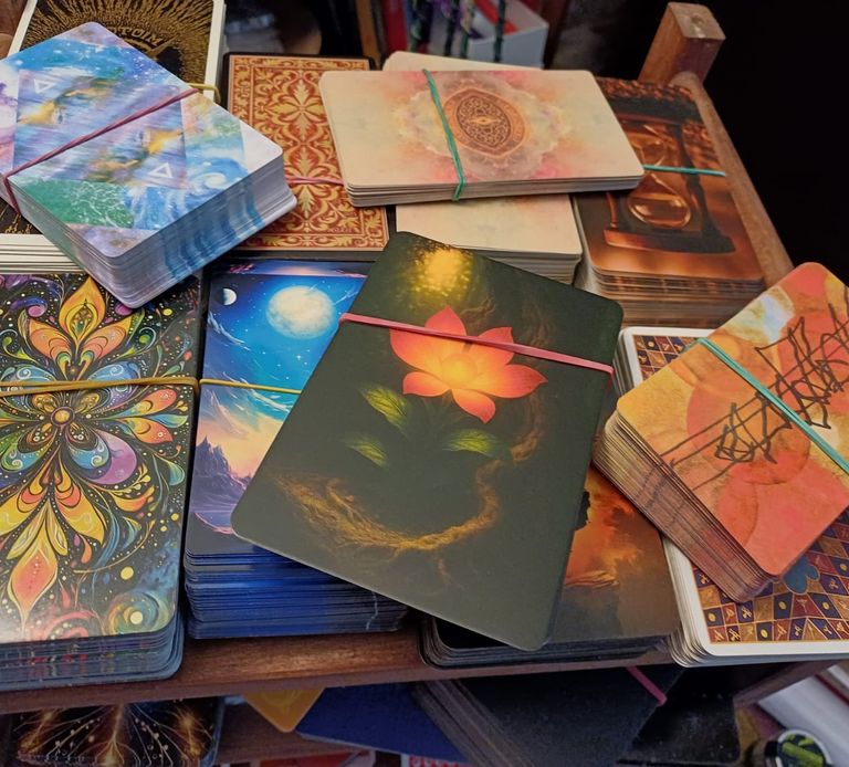 Il mio spazio sacro ove mi dedico alle letture, ormai ha 30 mazzi di carte, una diversa dall'altra poichè ognuna ha una sua voce: