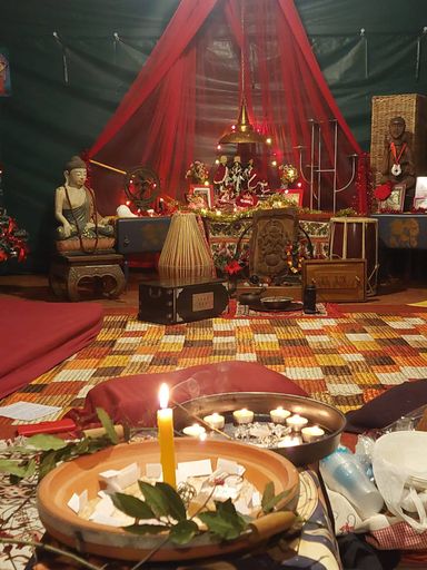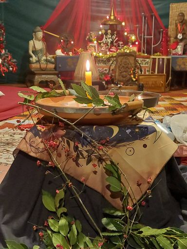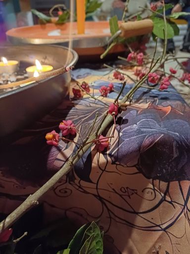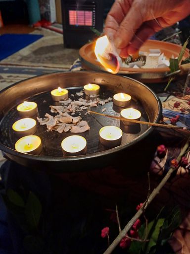 Condivisione dell’intento, lettura sul significato del solstizio, creazione dell’altare collettivo.