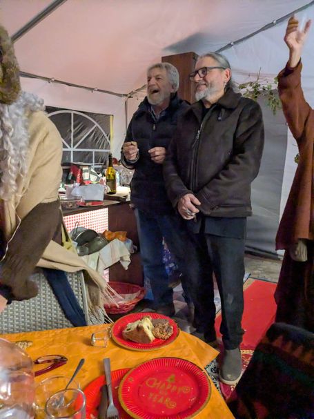 Cibo caldo e rustico portato da ognuno, in spirito di gratitudine e comunità.