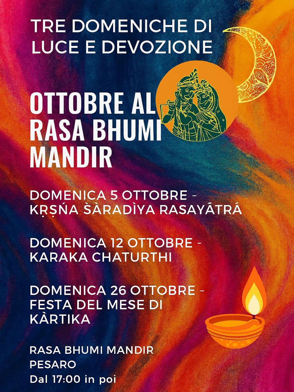 Nel cuore dell’autunno, quando la luna si fa piena e l’aria vibra di bellezza, il Rasa Bhumi Mandir apre le sue porte per tre celebrazioni sacre, dedicate all’amore divino, alla devozione e alla trasformazione.