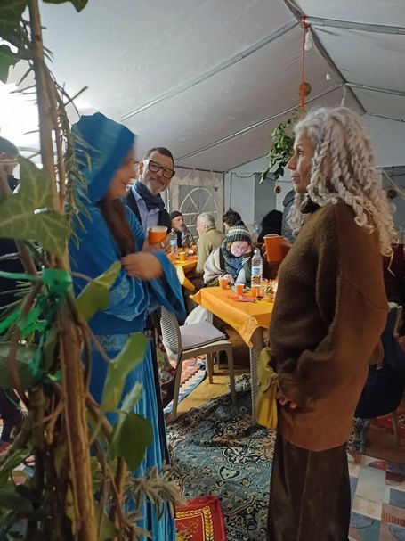 Tisana calda alle erbe invernali, benvenuto e apertura dello spazio sacro.